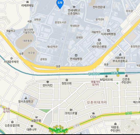 ▶ 지하철: 2호선(신촌역) 2번 출구