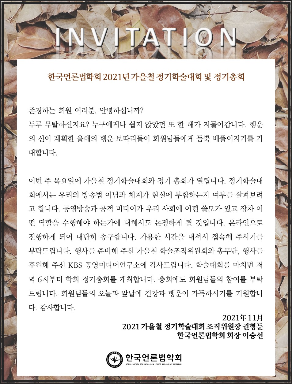 [공지] 한국언론법학회 2021 가을철 학술대회 및 정기총회 개최
