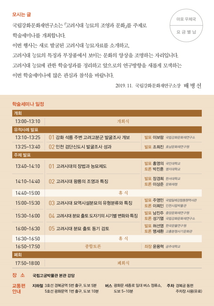 2019 국립강화문화재연구소 학술세미나 '고려시대 능묘의 조영과 문화' 개최