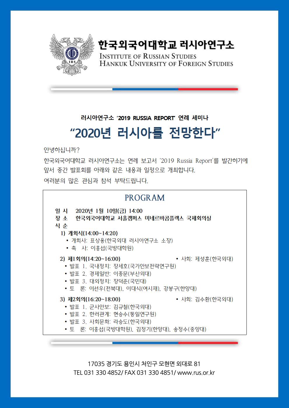 RUSSIA REPORT 연례 세미나: "2020년 러시아를 전망한다"