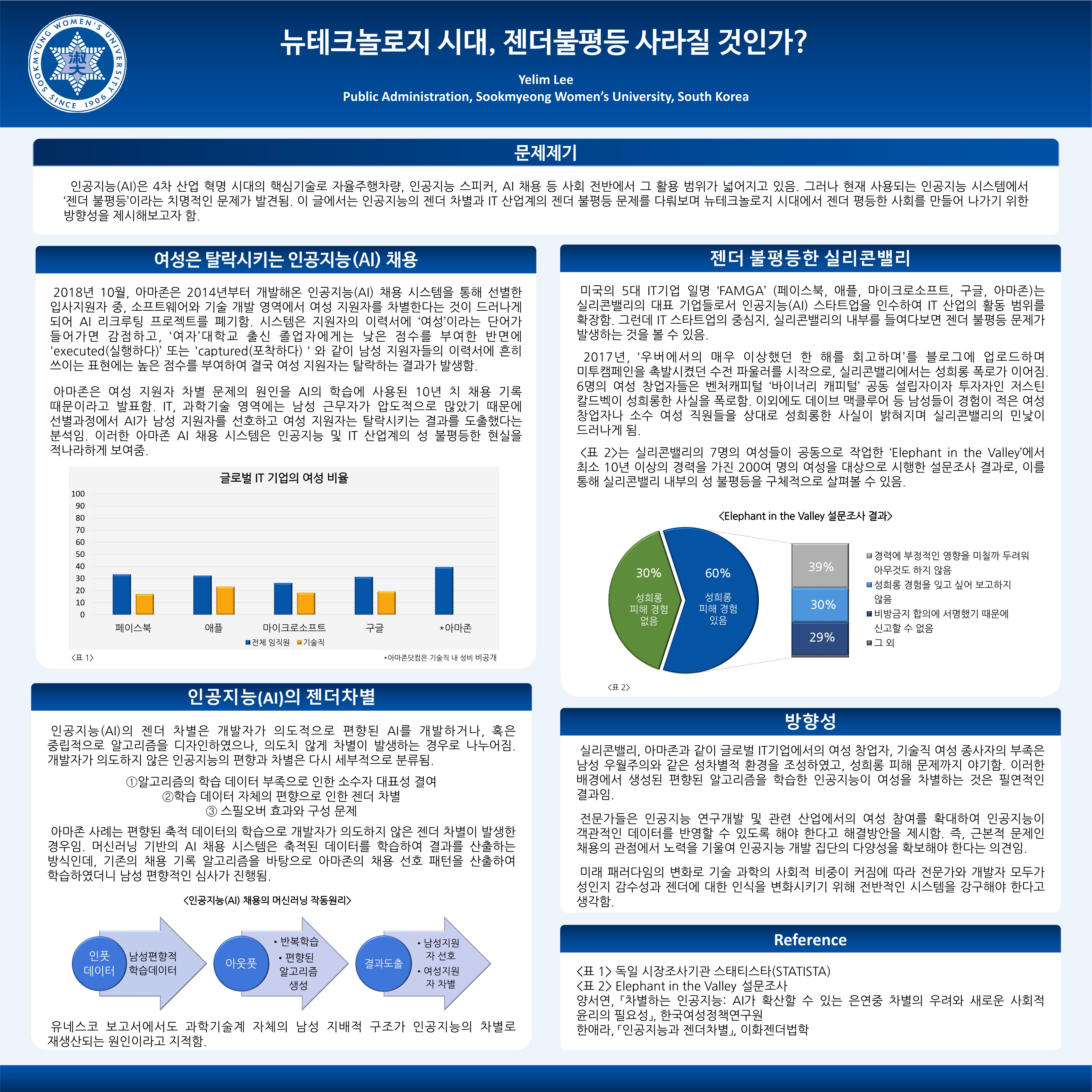 뉴테크놀로지 시대, 젠더불평등 사라질 것인가라는 주제의 연구 포스터이다.