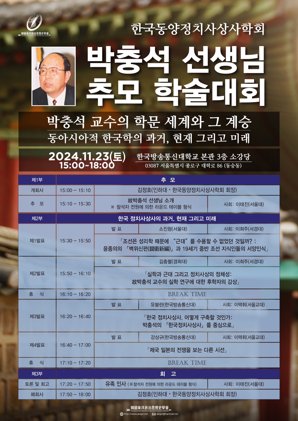 한국동양정치사상사학회 24년도 추계 학술회의를 개최합니다.