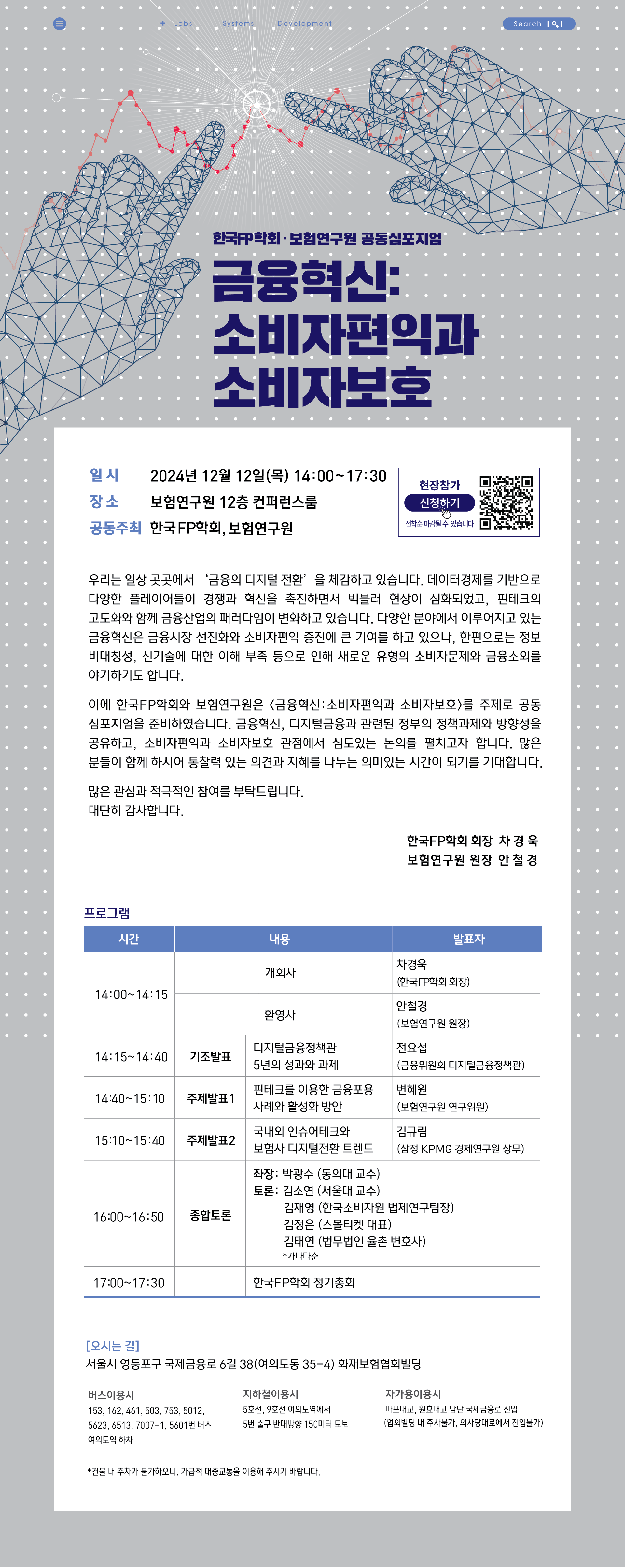 한국FP학회·보험연구원 공동심포지엄 및 정기총회 안내 - 12월 12일(목) 14:00