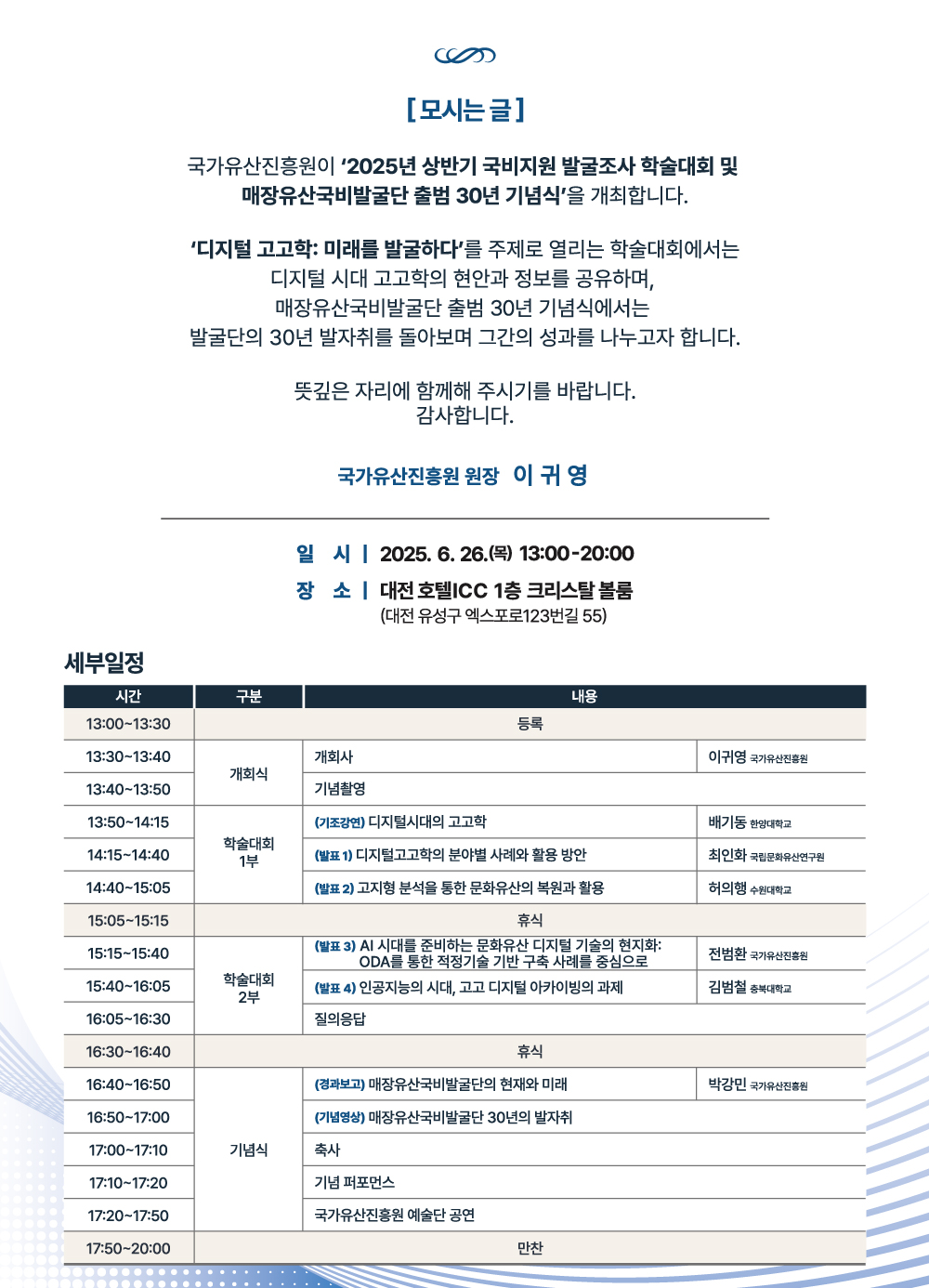 2025년 상반기 국비지원 발굴조사 학술대회 및 매장유산국비발굴단 출범 30년 기념식 초청장.jpg