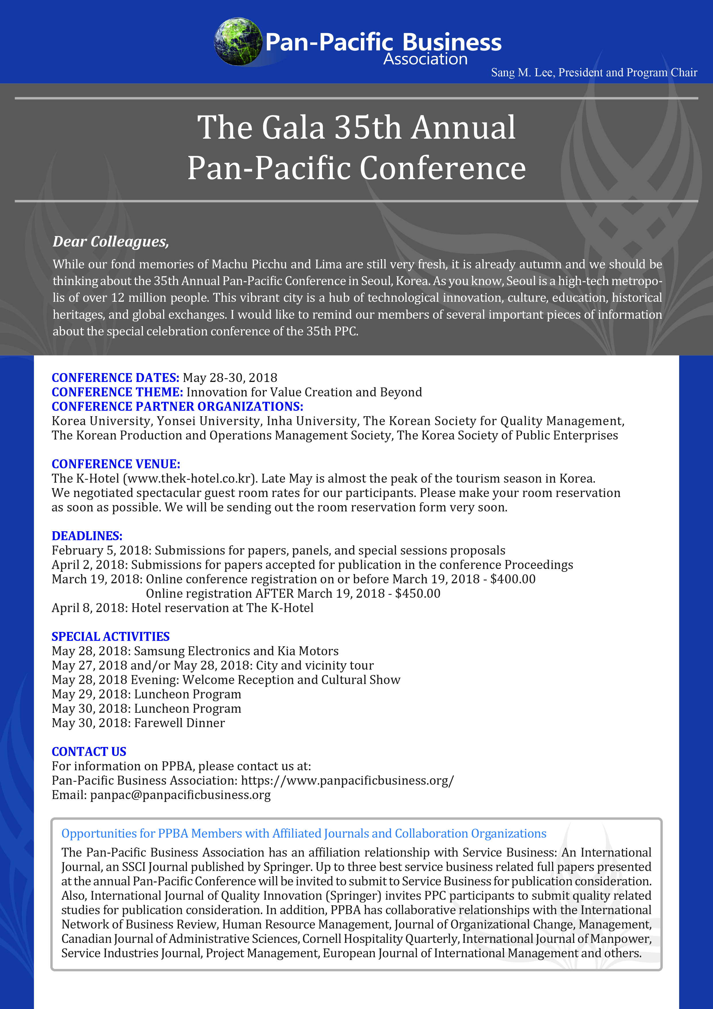 The Gala 35th Annual Pan-Pacific Conference 안내