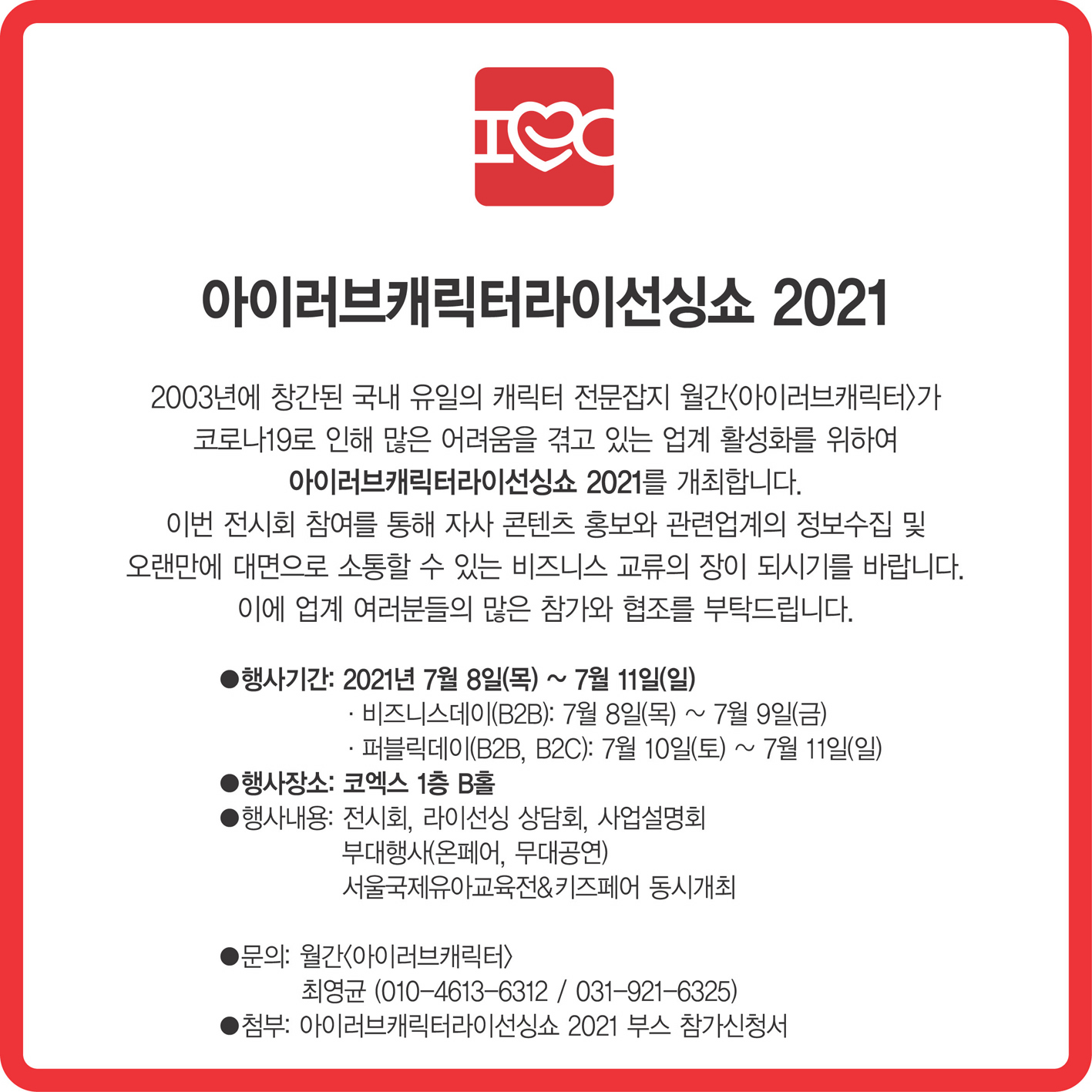 아이러브캐릭터라이선싱쇼 2021 참여 안내