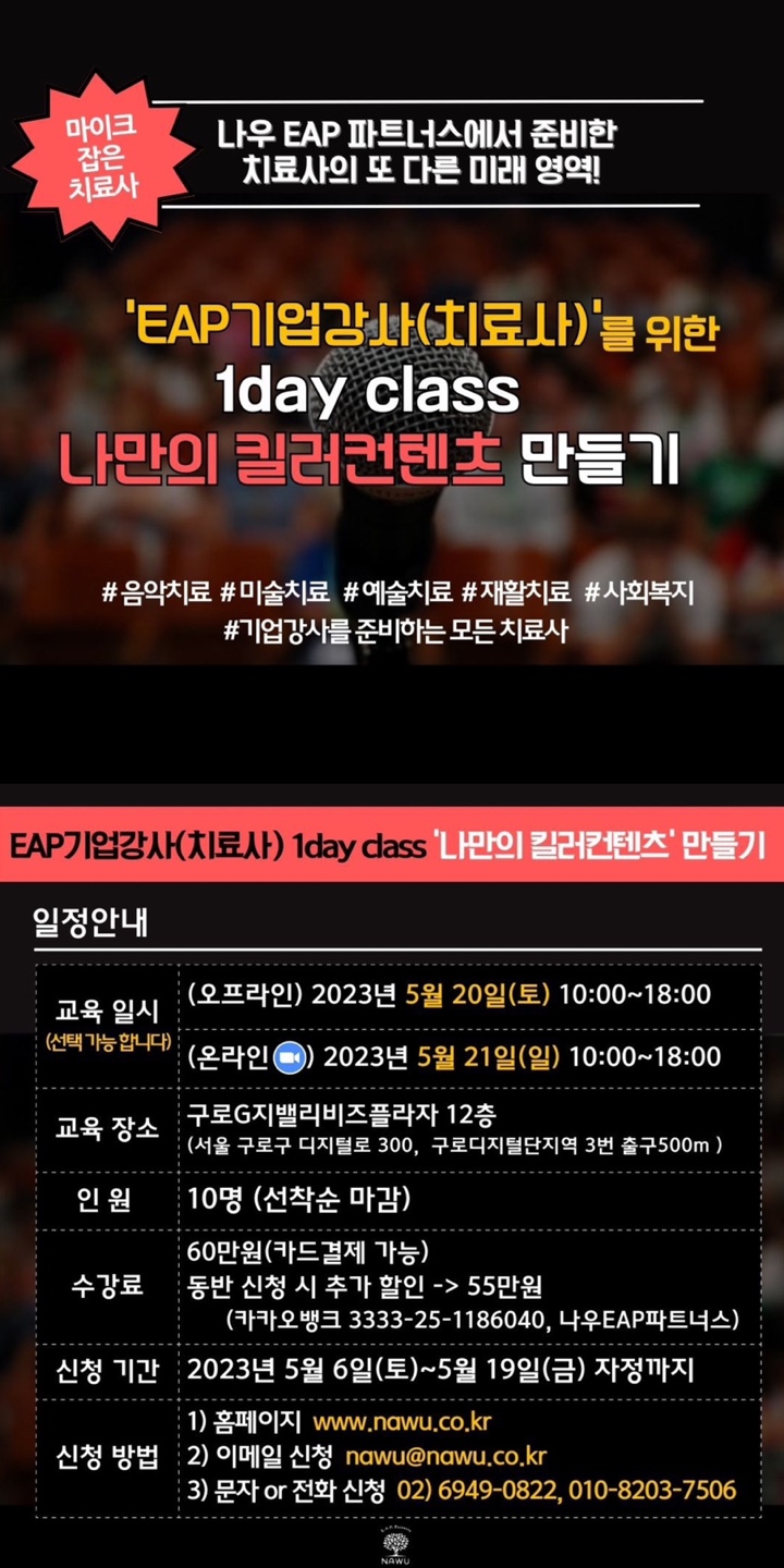 EAP기업강사(치료사)'를 위한 ONE DAY CLASS (5월 20일)